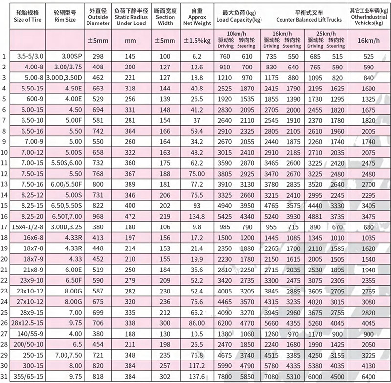 负荷大、滚动阻力小、能耗低、广泛用于叉车及其他工业车辆