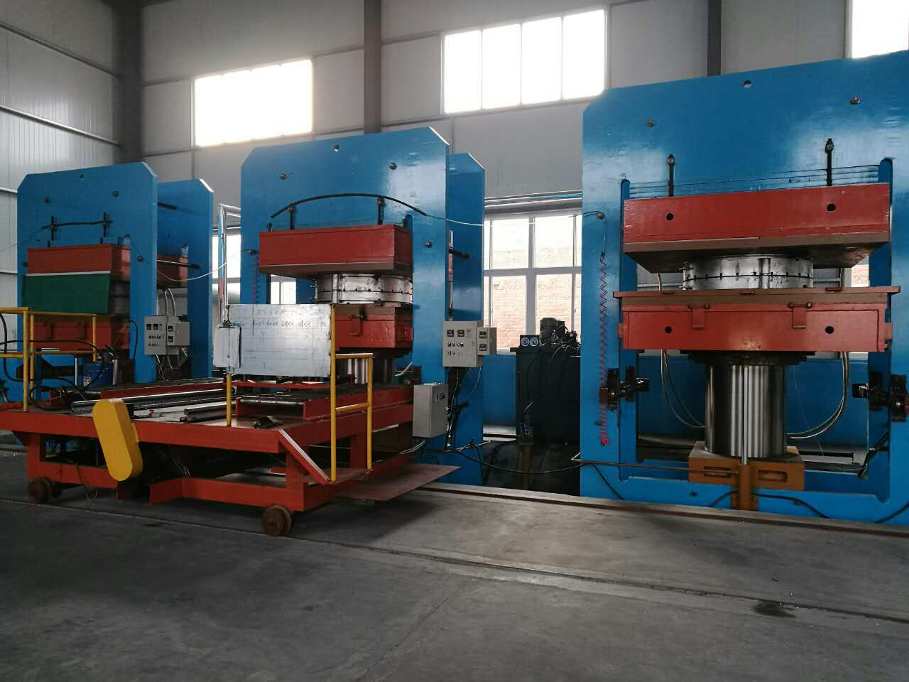 千吨压力机:全程自动控制、高压力硫化、确保胎质均匀,无汽泡,质量稳定。