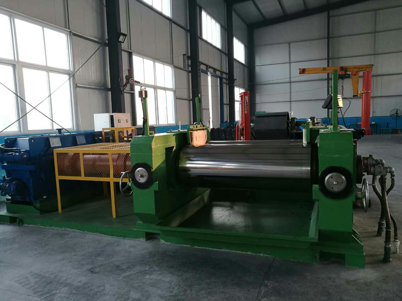 双轴开炼机:双轴驱动,输出力矩大,物料混和分散,效果好,胶片均匀、致密,无气泡。