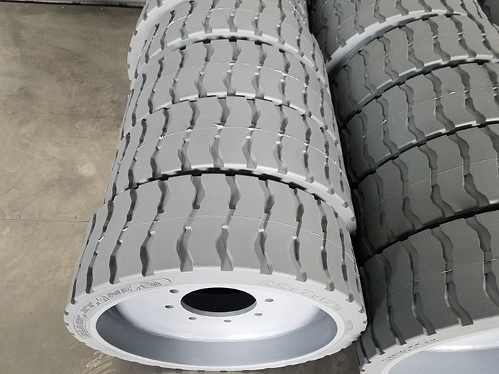 将堆高机实心轮脸面,然后将堆高机内轮全吊起,将螺孔对准个螺栓,放下内轮铜并检查内轮铜已放贴实,装入螺母到栓头部,然后用8-10公斤风炮机或气动冲击扳,手预拧紧到硬接触;使用810公斤风炮机或扭矩扳手顺时针、交错、对称分多次次拧紧轮毂母,直至全部达到力矩标准